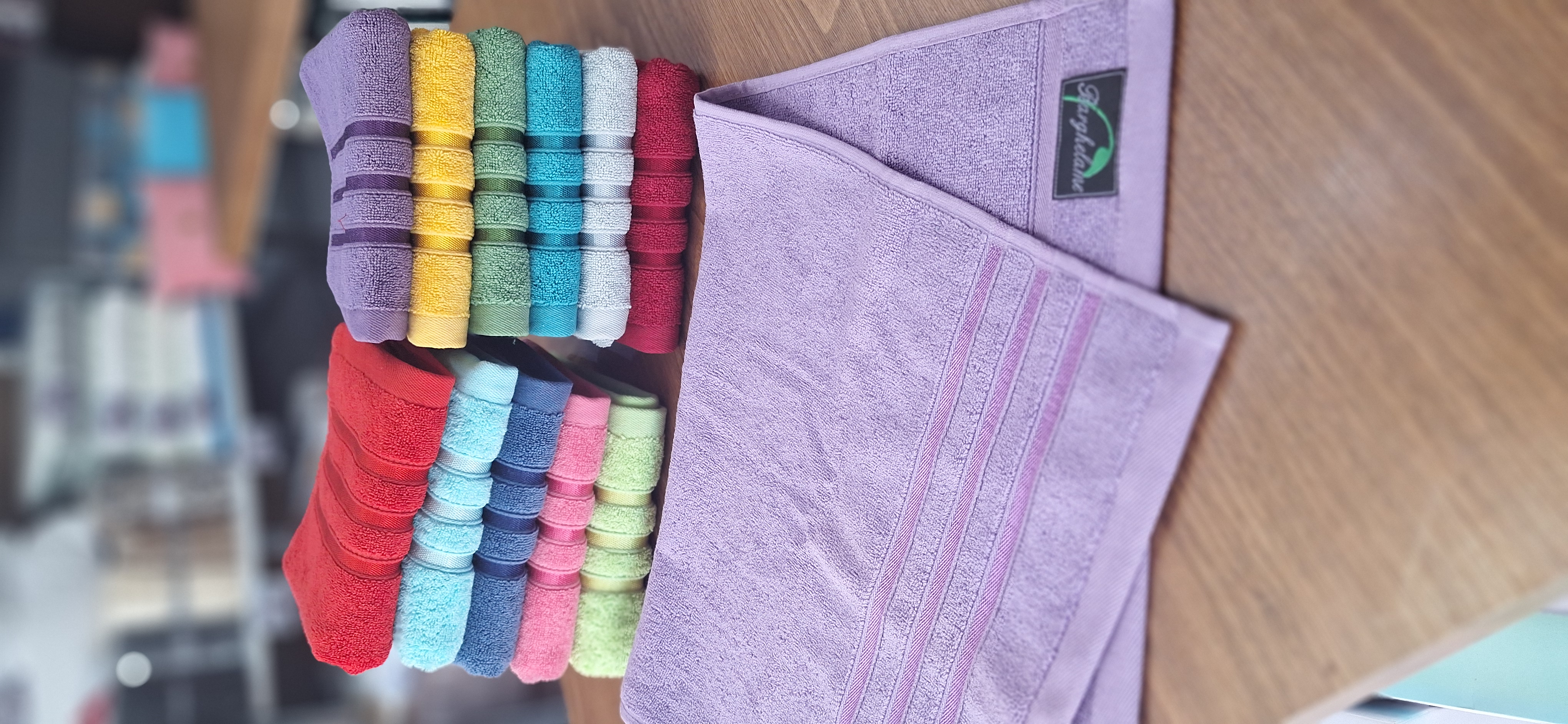 این حوله دست و صورت ظاهری شیک و درخشان دارد و مناسب استفاده روزمره است.