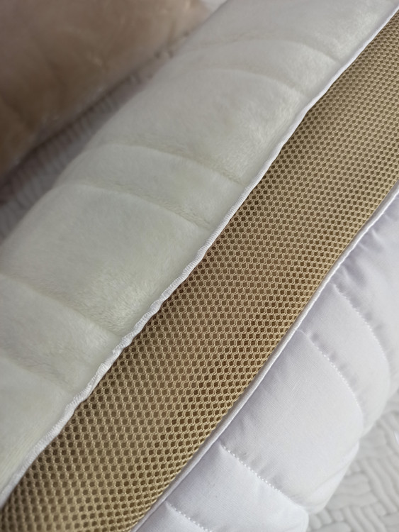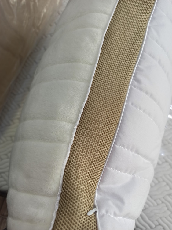 این بالش دو رو داره:یک طرف با پارچه خنکتر و لطیفتر برای جلوگیری از تعریق و حس خنکی هنگام خوابیک طرف نرمتر و گرمتر برای ایجاد حس آرامش و گرمای ملایم