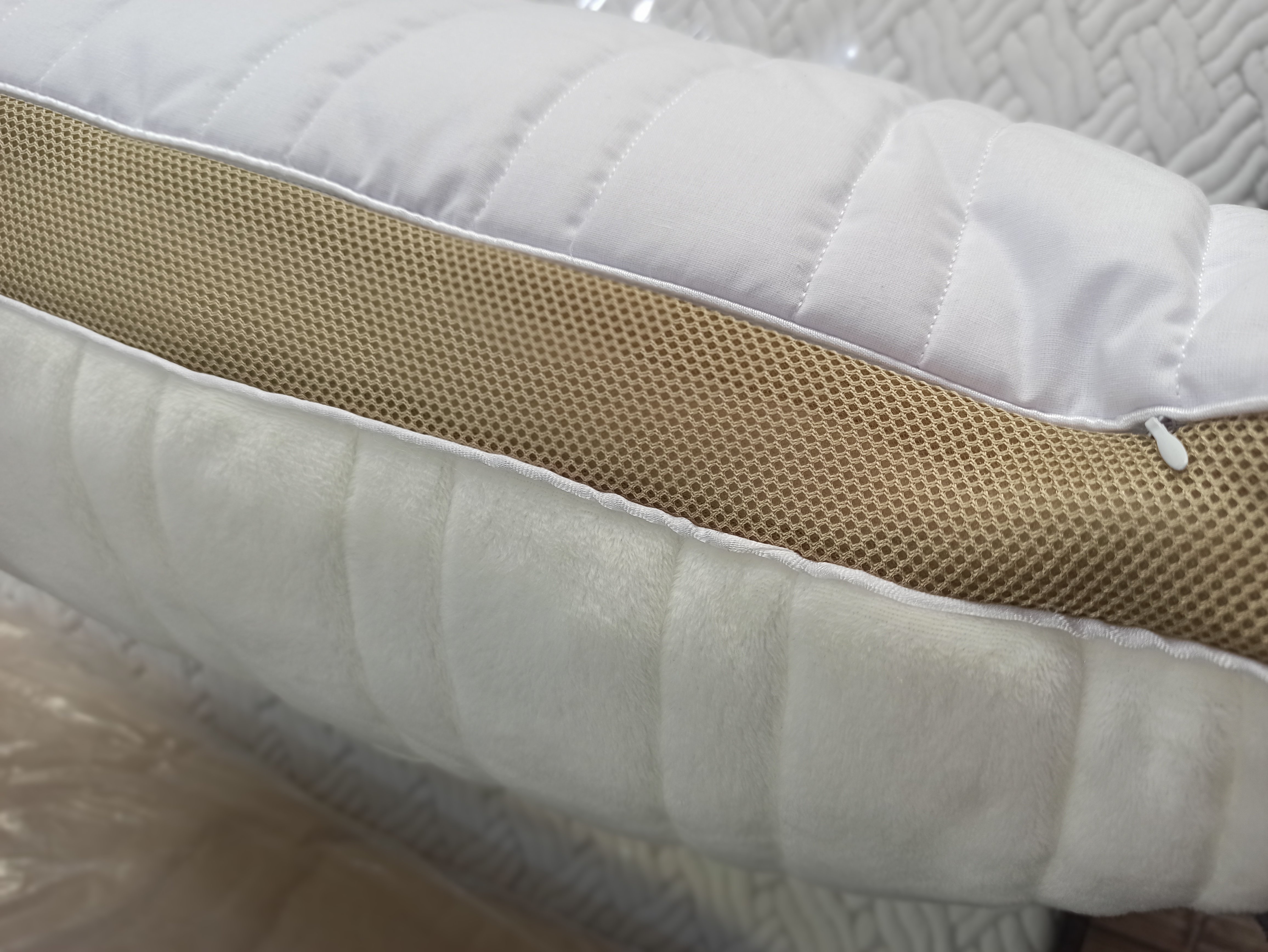 این بالش دو رو داره:یک طرف با پارچه خنکتر و لطیفتر برای جلوگیری از تعریق و حس خنکی هنگام خوابیک طرف نرمتر و گرمتر برای ایجاد حس آرامش و گرمای ملایم
